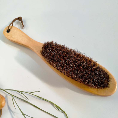 Gon22 Brosse de nettoyage en bois massif, brosse à chaussures en cuir, brosse en cuir, brosse à cirer les chaussures, brosse à poils doux, brosse à manche en bois